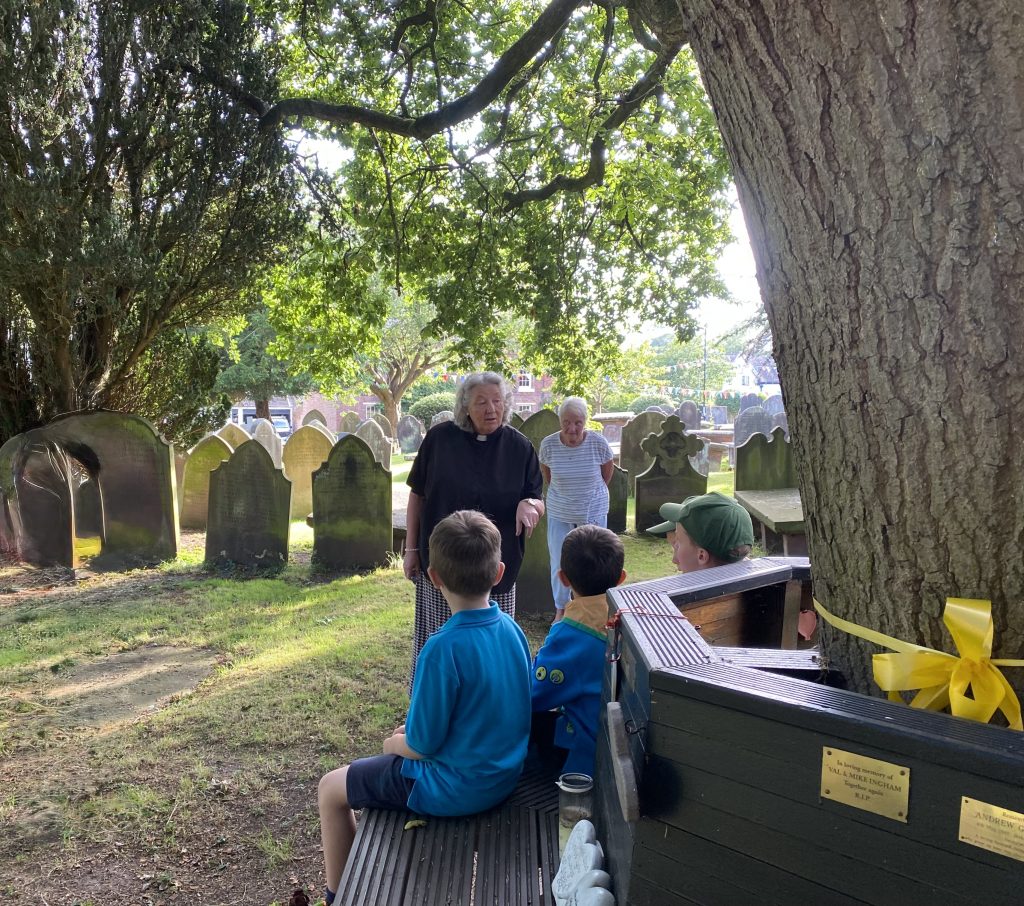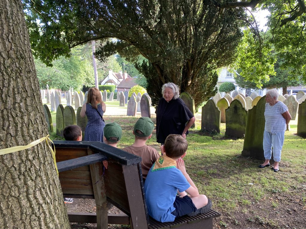 The 12th Bebbington Beavers visited St Mary’s Church and the church yard on 30th June as they were working on their Explorers Badge. Rev’d Beth and Chris shared lots of fascinating facts about the graveyard. Beavers tied prayer ribbons on the railings and learned about prayers for peace. They also found out about the oldest graves, the old yew tree and lots more!