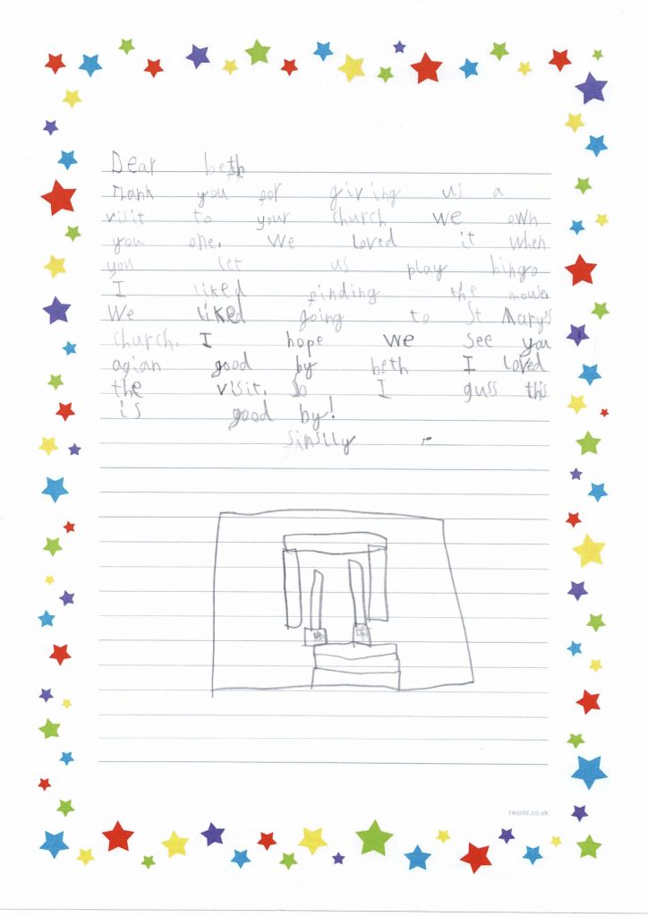 Rev’d Beth was delighted to receive, thank you letters afterwards from the children – a selection of them are below.