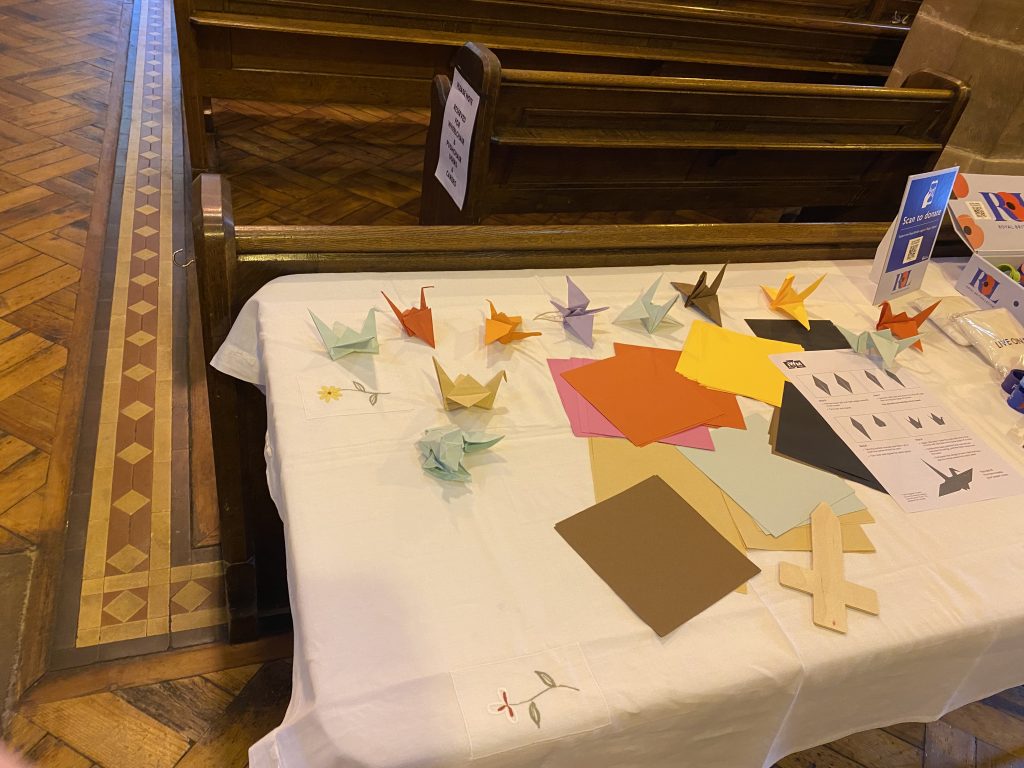 Colouring and craft activities related to peace were available, including a Japanese origami activity, making crane birds with paper. (Cranes are a Japanese symbol of peace.)