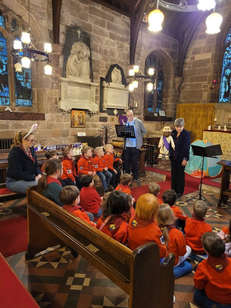 We welcomed the 5th Bebbington Squirrels who were learning about the real Easter Story with the help of puppets and crafts. The also enjoyed an egg hunt round the church.