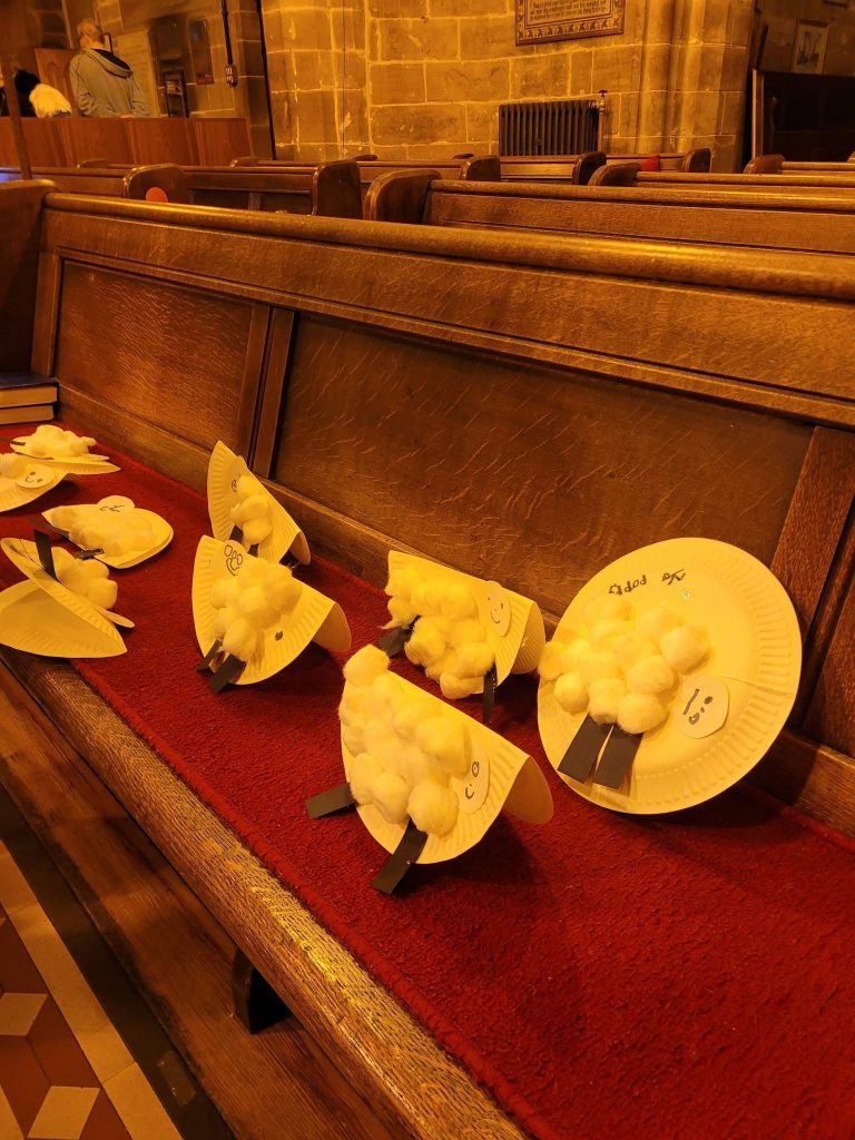 The church was dimmed and full of light and colour, crafts, scripture and cake!