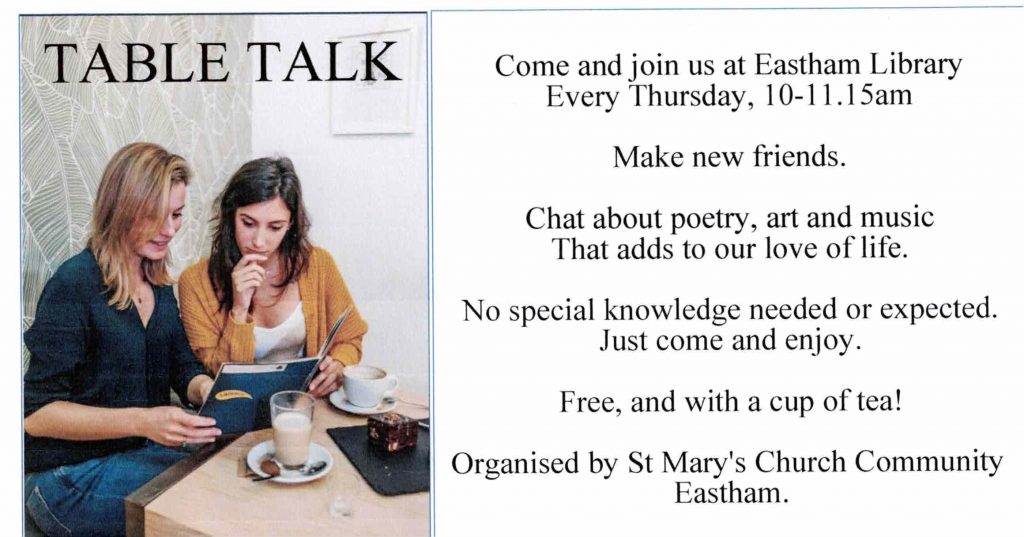 Thursdays 10.00 – 11.15 Table Talk in Eastham Library